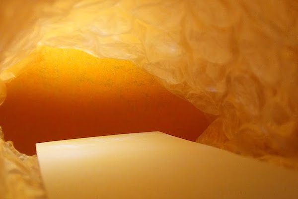 - Materials: packaging translucent wrap, tape, coloured tissue paper, bubble wrap, wooden base